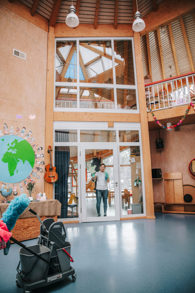 • Reinigung von Spielgeräten und Materialien: Alle Spielsachen und Lernmaterialien werden desinfiziert, um sicherzustellen, dass sie hygienisch und sicher für die Kinder sind.